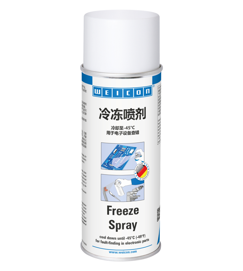 WEICON 冷冻喷剂用途广泛,适用于电子设备的查错和工业部门的维修工作。 冷冻喷剂能迅速将零件冷却至-45 °C;哪怕是极为细小的零件它也能精准冷却。 WEICON 冷冻喷剂不导电,不伤材料(塑料除外),适用于各种工业及技术领域。