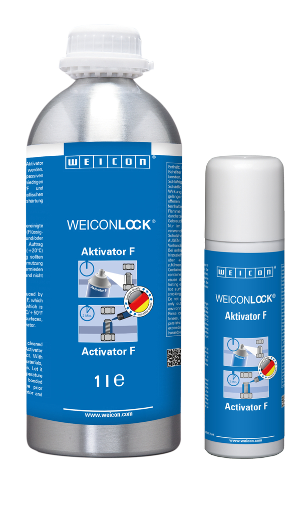WEICONLOCK 催化剂喷剂F进行涂胶前的预处理,能够大大缩短固化时间。针对惰性材质、低温环境(10℃及以下)以及较大的粘接缝隙,也建议使用该产品。遇到非金属材质时,只有使用催化剂F,才能实现固化。