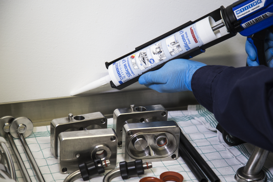 WEICON食品级硅胶LP是一款乙酯酸交联、具永久弹性的密封胶。它具备极好的耐化学性、耐老化性、耐侯性及耐紫外线。该产品耐高温达+180°C。它的附着力出色,能够强效附着于钢、铝、玻璃、塑料等材质上。 食品级硅胶LP专用于食品及饮用水领域,如奶制品的生产、屠宰场、饮料及食品的生产、大型厨房等;亦可用于饮用水领域陶瓷面板间的密封。该产品经鲁尔区卫生署检验,符合联邦环保局的KTW饮用水标准。