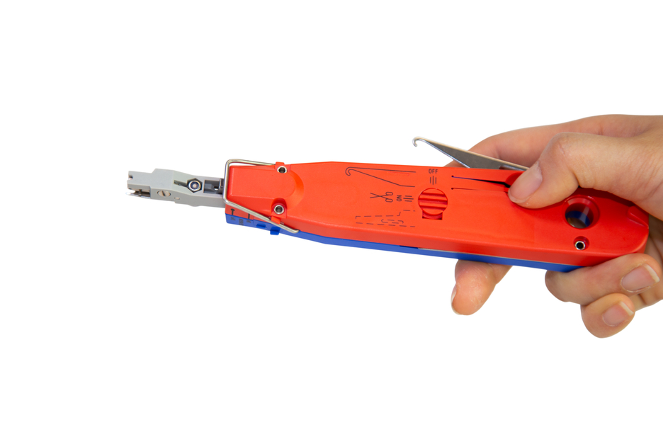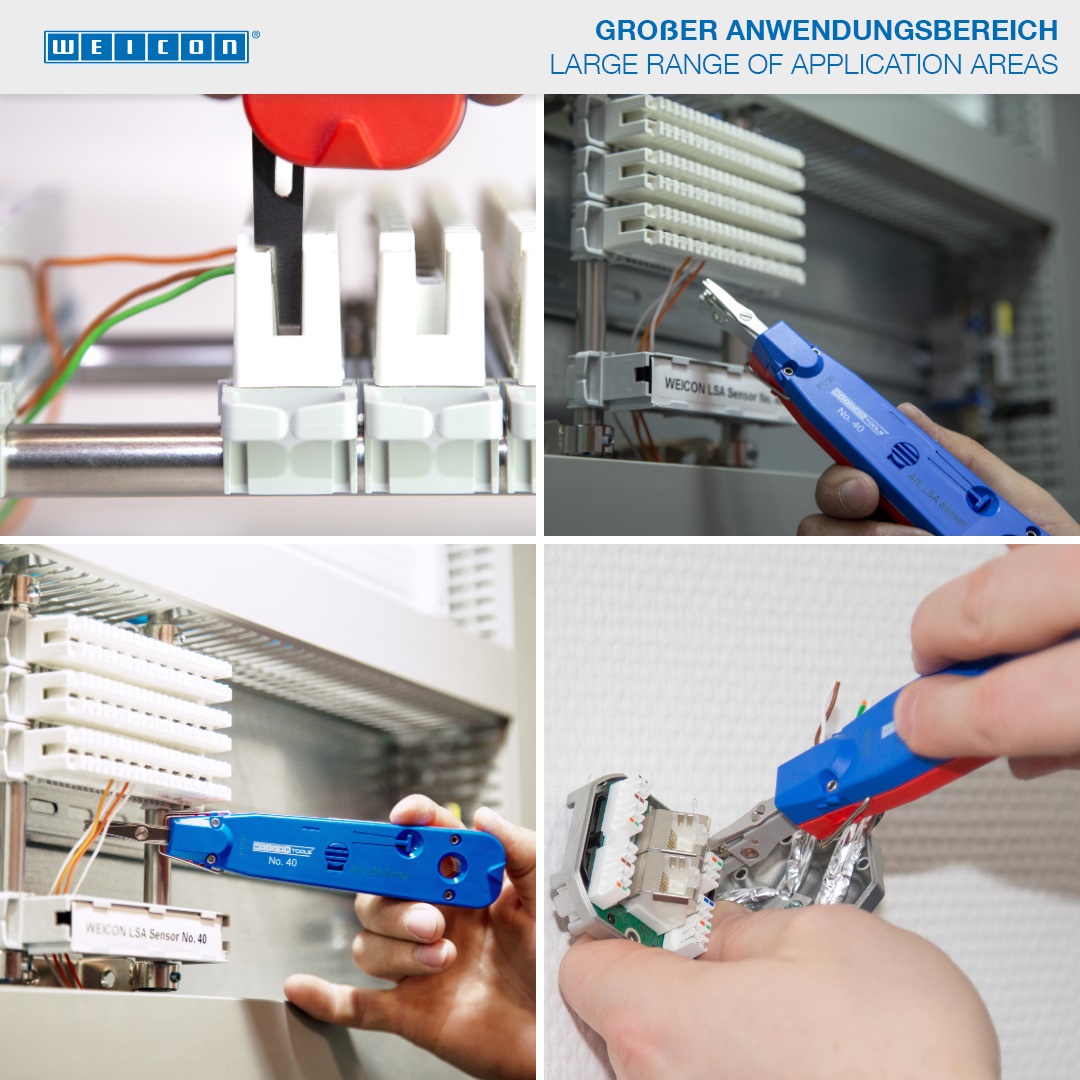 For the solderless, screwless and no-stripping |inserting and simultaneously cutting of wire |ends into LSA punch-down blocks