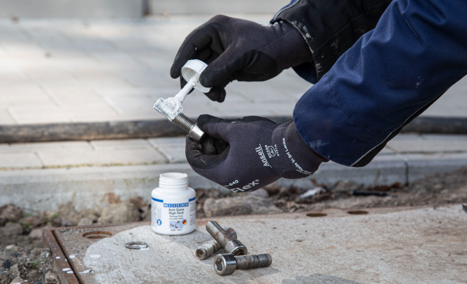 装配膏则由较高配比的固态润滑成分合成,通常来说装配膏含30%至50%的固态润滑成分。这意味着装配膏非常适合于高温度、高负载及长时期的露天户外环境。它可以防止氧化、腐蚀、摩擦腐蚀、粘滑效应和冷焊。装配膏适用于极少或不发生相对运动、但承受极大压力的物体,因此,它是螺纹连接或插销的理想润滑剂。它一方面确保了螺栓紧密连接不松脱,但同时也允许螺栓可以随时被顺利拆卸。
