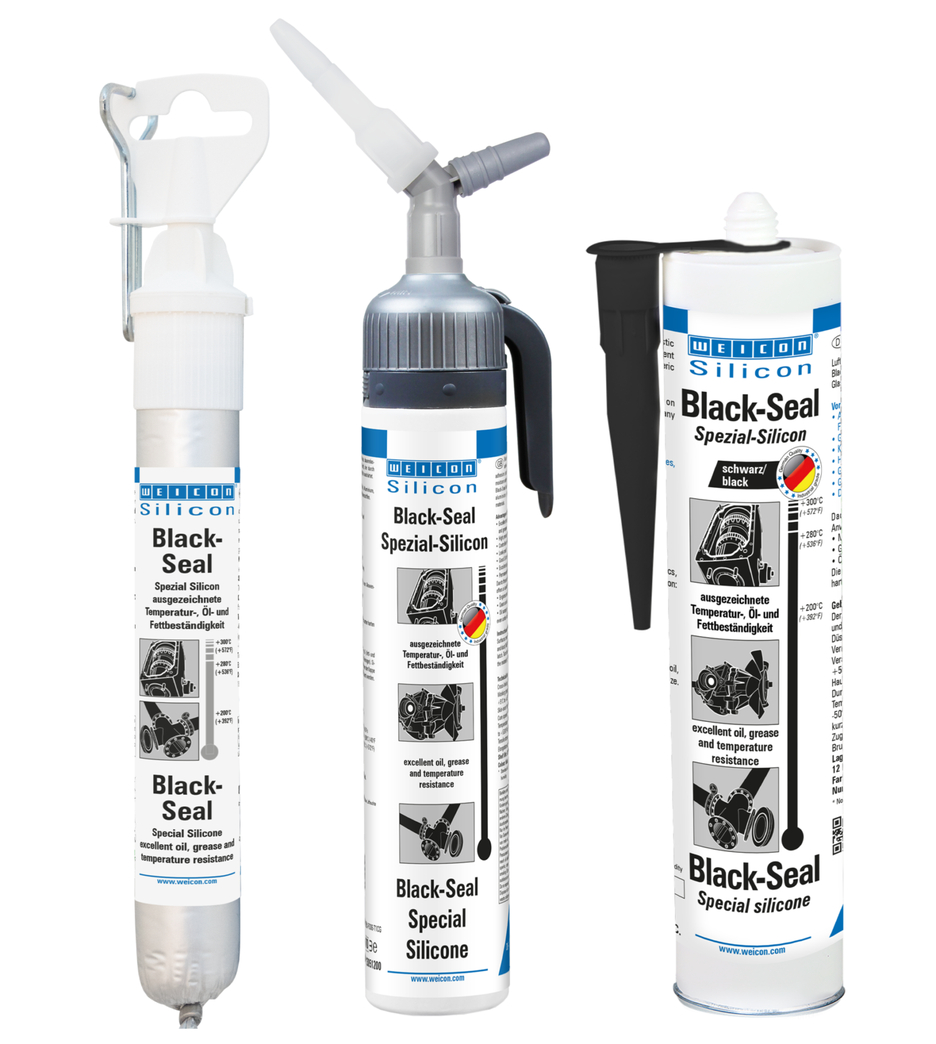 WEICON Black Seal 黑色硅树脂耐高温达+280 °C。该产品不含化学溶剂,强度高,耐压力,耐老化,弹性出色(断裂伸长率约为500%)。 Black Seal 黑色硅树脂专门针对需要耐油耐脂的工况。WEICON Black Seal 黑色硅树脂能够用于变速箱、阀门和引擎盖、储油槽、水泵、齿轮和轴承、法兰、油罐等的密封。