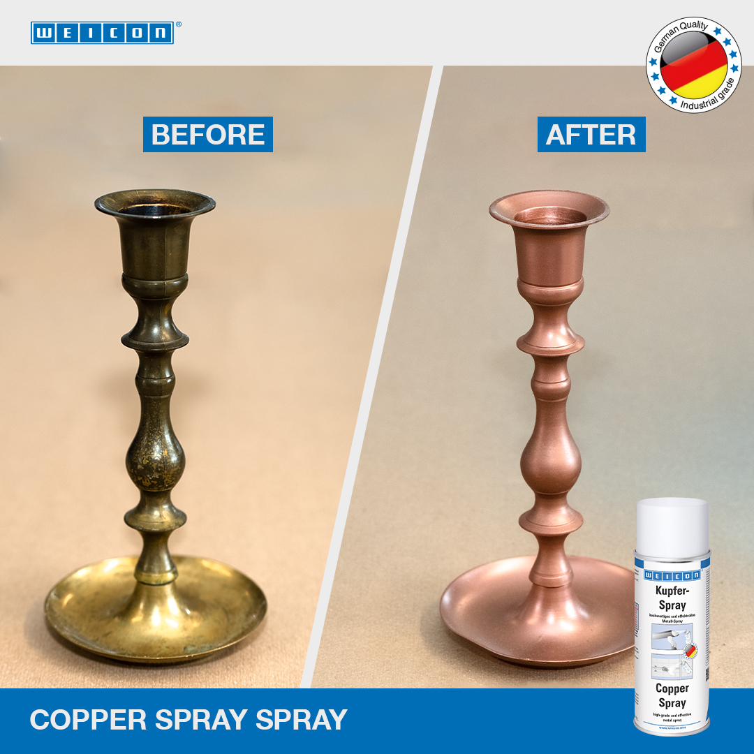 WEICON 紫铜喷剂是一款高品质的保护、装饰性喷剂,其紫铜含量高,色泽近似有色金属,耐候性强,附着力出色,室内外均可使用。 该产品亦可用于改善各种材料表面或设计零件的视觉效果(镀铜效果)。 紫铜喷剂能够用于窗台板、水槽和落水管、室外照明和邮箱、工艺品及室内外装潢等。