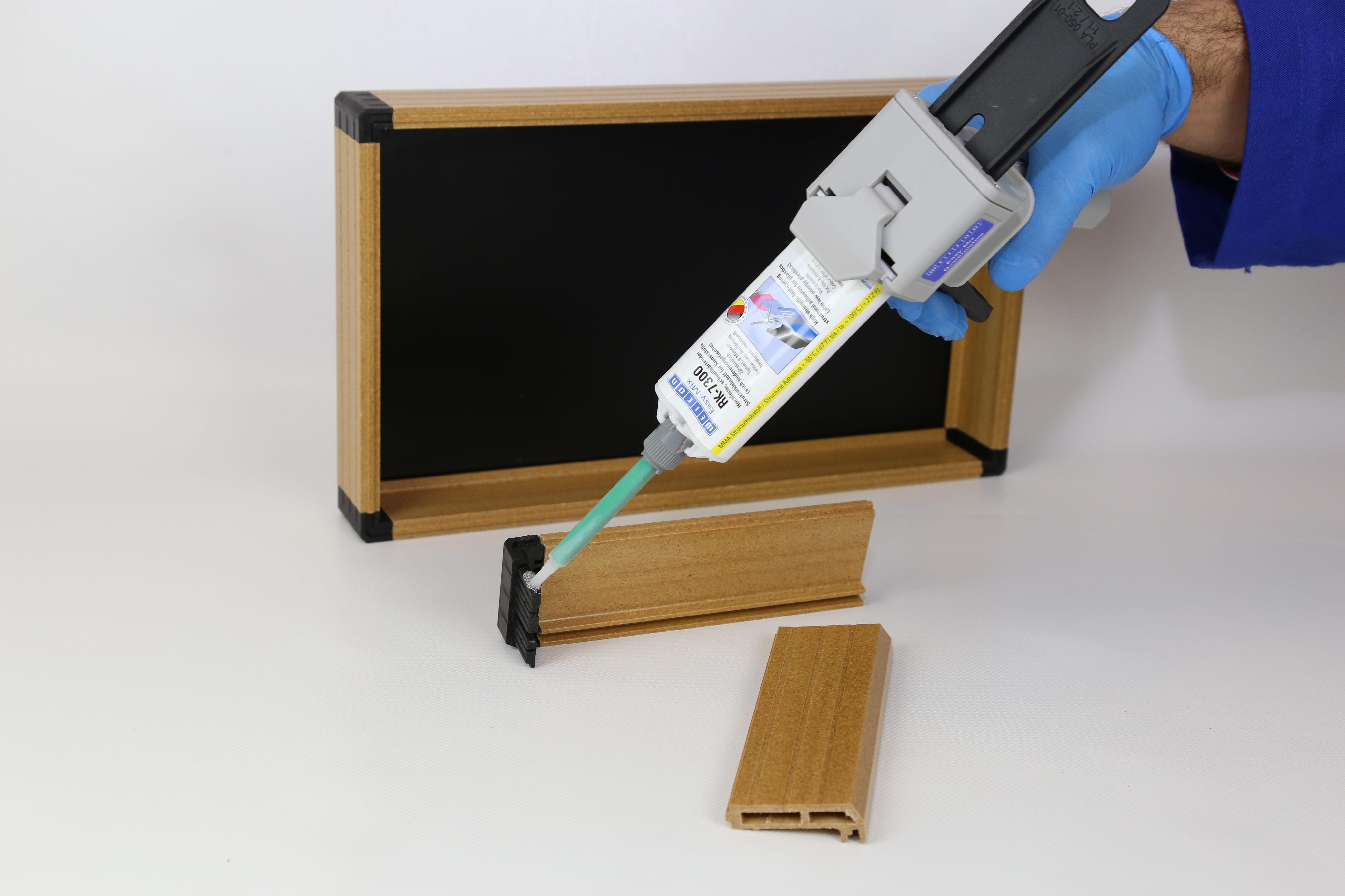 WEICON Easy-Mix 易混合型 RK-7300 一款以MMA(甲基丙烯酸甲酯)为基材的结构胶,它固化迅速,不含溶剂。该粘合剂能够高强度粘接各种材料。 它可普遍用于静态和动态负载。在 PE 或 PP 等低表面张力塑料上也可以实现高强度粘接。它具有剩余弹性,因而能够粘接膨胀系数不同的材料,如塑料/铝或钢。 特殊填充材料(玻璃珠)确保了 0.25 毫米的恒定粘合缝隙。最大粘接缝隙:1 毫米。 操作50毫升的该产品可使用Easy-Mix胶枪D 50进行涂胶。