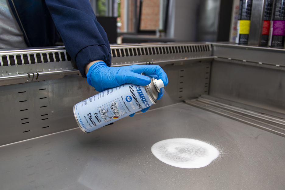 WEICON泡沫清洁剂是一款通用型产品,可为防水表面进行清洁与去脂,亦可为塑料、玻璃及针织材质等进行去污处理。该产品具有NSF A1级食品认证,因而适用于敏感领域,如食品与饮料工业、制药与化妆品工业等。 该喷剂可用于清洁生产或零售环节中与食品发生接触的传输带,为机器外壳、称重装置、液晶屏幕、触摸屏幕、导航仪等进行清洁与去污。泡沫清洁剂可去除各种污渍,如油、脂、指纹、烟渍、尼古丁、粉尘及蚊虫残留。它适用于所有不允许使用酸性和碱性清洁产品的地方。