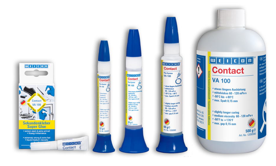WEICON 瞬间胶 VA 100是一款适用于金属、橡胶和塑料的通用胶材,同种和异种材质均可粘接。 VA 100是DIY的理想帮手,亦适用于其它诸多工业领域。