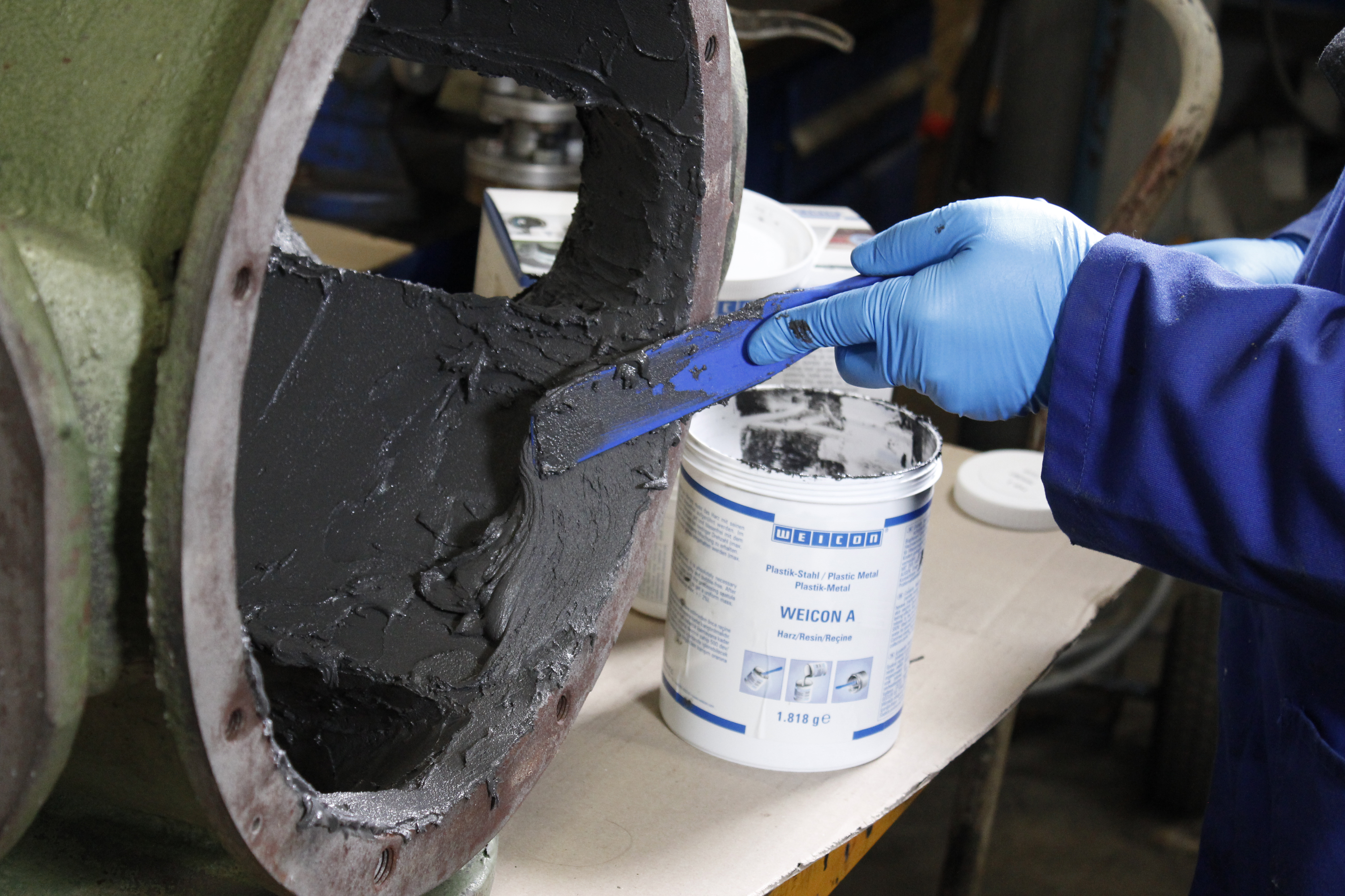WEICON A 取得船级社DNV认证,适用于海事工业的维护与维修工程。该环氧树脂由钢填充,有磁性,呈膏状,适用于垂直平面的操作。它可作为腐蚀或点蚀处的涂层使用,亦可为裂孔和气孔进行修复。例如,当钢制部件由于腐蚀而产生破损时,可用该产品对破损处进行重塑。环氧树脂 WEICON A 作为焊接的替代工艺,不会产生焊接过程中的热变形。双组份环氧树脂适用于罐体和管道的维修以及电机、泵体、机器部件上裂纹的修复。针对废水处理系统中长期与化学物质接触的管道,环氧树脂无疑是最合适的修补产品。该产品还能够应用于模具和模型、工具、张紧装置等的生产。WEICON A 可广泛应用于机械制造、工具制造、水泥工业、手工业、模型与磨具制造及其他许多工业领域。