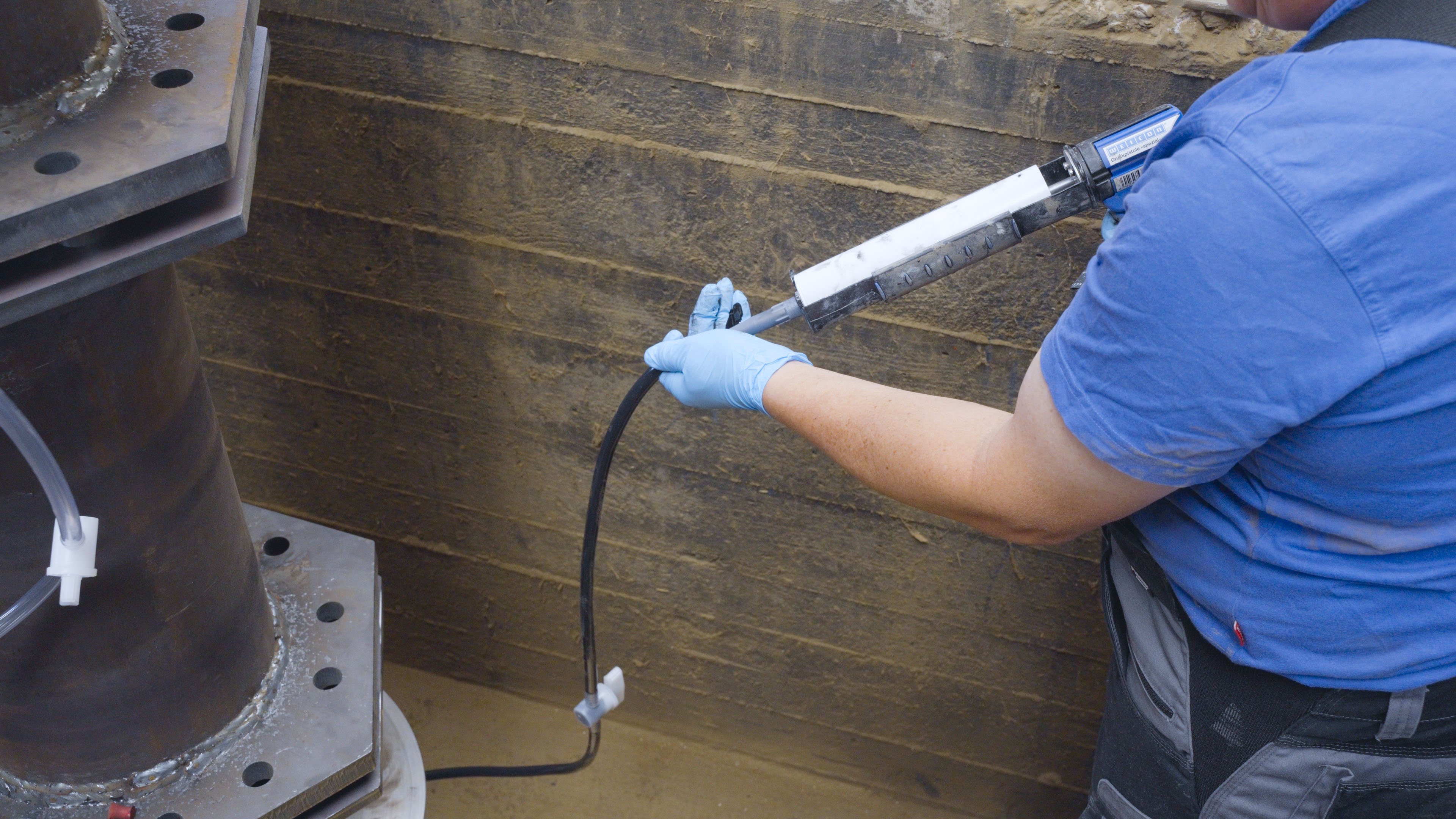 一些复杂的结构设计,如桥梁、桥墩、机器设备等,有可能因多种因素的影响,在底座、支撑处或法兰连接等位置产生缝隙。这便造成作用力无法平均分布在平面上。 WEICON 注入封隔器搭配灌封产品使用,如环氧树脂系列的金属修补剂 WEICON Wr,可用于灌封或填补缝隙。 注入封隔器套装的各个组件互相兼容,针对不同的工况,可以选择最合适的组件进行操作。 该套装包含一个连接胶管和封隔器的连接头,以及两个不同尺寸的封隔器。 注入封隔器套装包含一个螺纹喷嘴R1/4"-8 PA6,一根一米长的PE软管 10x8 mm,以及一个PE软管接头。注入封隔器有50x30x10 mm及50x25x25 mm两种尺寸。