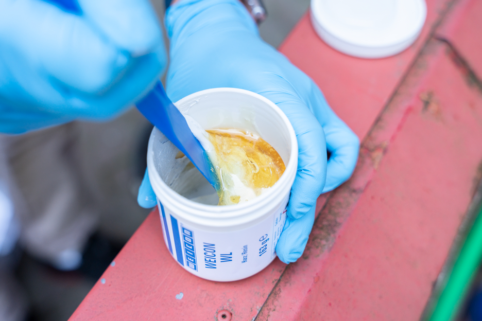 此款环氧树脂系列的金属修补剂WEICON WL是一款用于高负载表面的维修及保护涂层。它呈液态, 可喷涂、可涂刷、自流平,且具有余弹性,尤其在不锈钢表面上具有很强的粘附力, 以陶瓷填充, 耐化学腐蚀。 鉴于其可操作时间长的特性, 金属修补剂 WEICON WL可在高温环境中应用, 也可大面积使用。由于该产品具有很高的流动性,使用时应薄层涂覆,并在复涂前留足等待时间。 WEICON WL十分适合与其他金属修补剂联合使用。 举例来说, 该款双组分环氧树脂可作为底漆用在重载不锈钢泵壳的内衬上。该表面涂层可用于污水处理、水泵、水利输送、机械与设备制造、仪器制造及其他诸多工业领域。