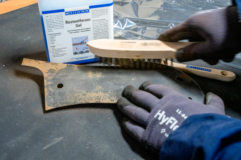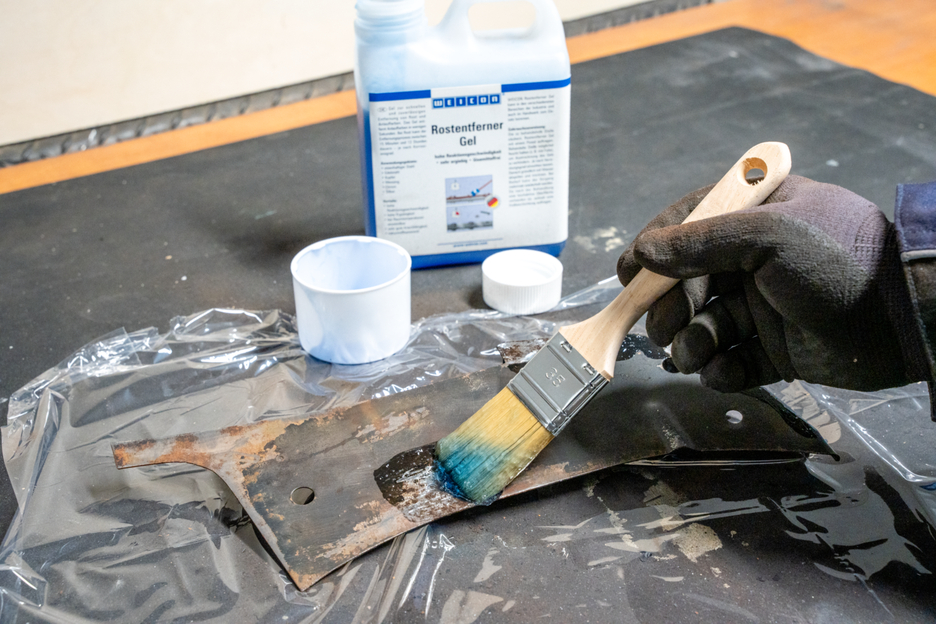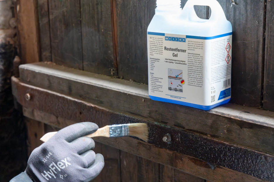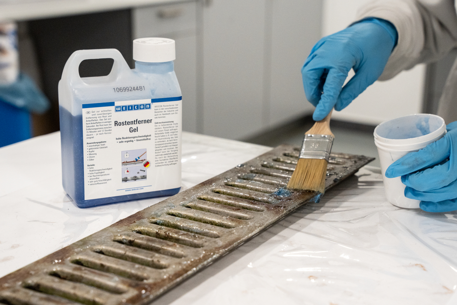 这是一款用于快速且可靠地清除锈蚀和金属热变色的除锈啫喱。该产品可用于富铁钢材、拉丝不锈钢、紫铜、黄铜、铬和银。它反应速度极快,渗流性极佳,而且使用起来十分经济高效。只需几秒,即可去除金属热变色。而锈蚀的去除时间则取决于生锈程度,介于15分钟至12小时间不等。 使用时,该蓝色啫喱无需额外加热,室温下即可操作。由于其成分天然而不含溶剂,可确保温和地去除锈蚀。 WEICON 液态除锈剂(啫喱状)可用于各种工业及手工业领域。