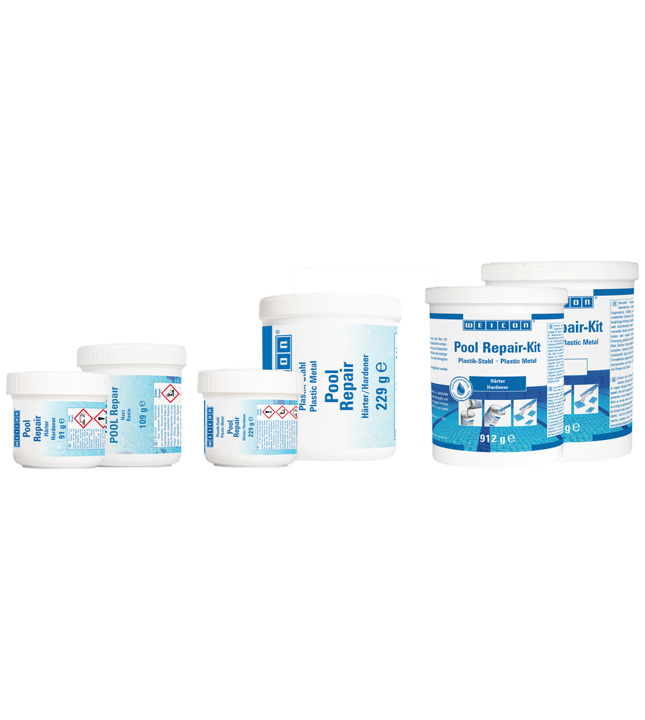 此款WEICON 泳池修补套装特别适用于水下的快速维修。其绝佳的附着力确保其可在潮湿表面上直接使用。而其迅速固化的特性则使其适用于地砖、瓷砖和马赛克砖等的修缮工作。