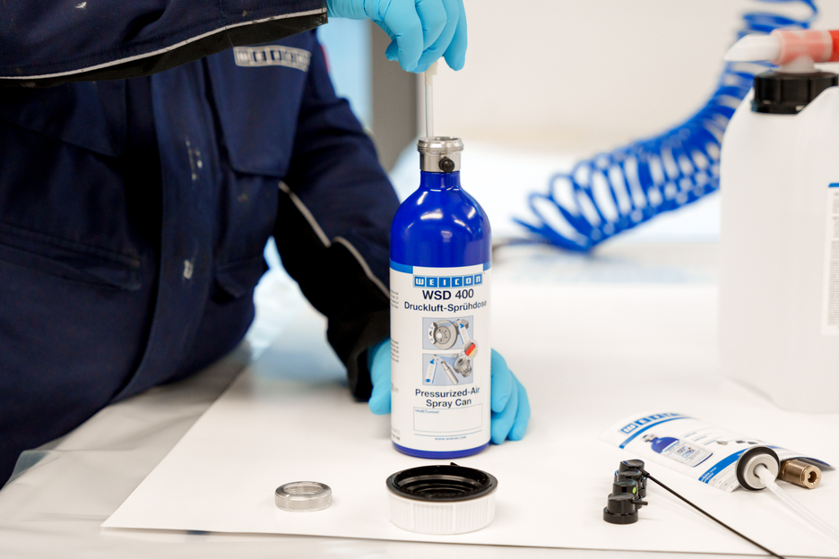 可重复使用的铝质压缩空气喷罐,适用于约400 ml的工艺液。推进剂:环保的压缩空气。使用适配器,通过压缩空气(最佳工作压力为 7.5 巴)对喷罐进行充气。 WSD 400 的备品备件包括一个通用于所有空压设备的适配器,一套带有四个不同喷头的喷头套装,以及一个带吸管的球阀。
